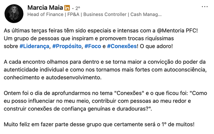 Executiva com +20 anos de experiência em finanças, operações e liderança estratégica no Brasil e nos EUA em empresas globais de mídia e entretenimento. CFO LatAm, conselheira, mentora e chair Brasil do VAB. Conecta performance, visão de negócios e gestão humanizada para transformar lideranças e organizações.